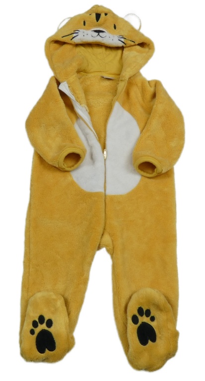 Žluto-bílá chlupatá kombinéza s kapucí- tygr