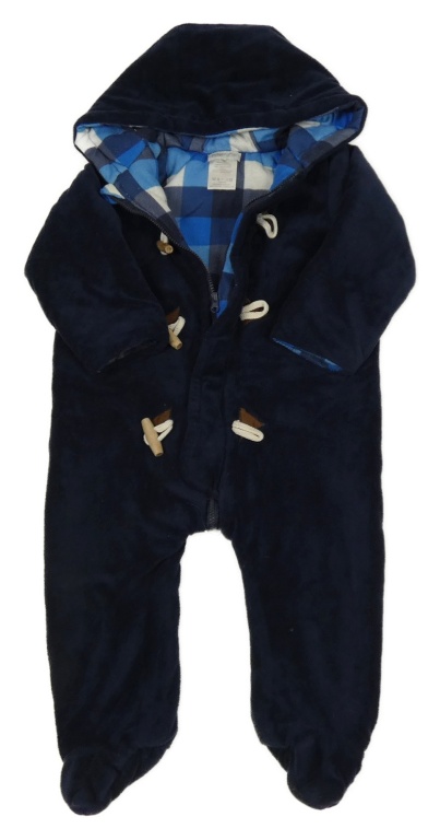 Tmavomodrá sametová zateplená kombinéza s kapucí