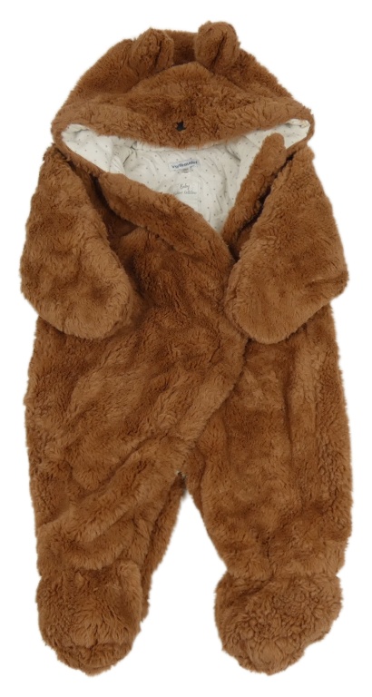 Hnědá kožešinová zateplená kombinéza s kapucí Vertbaudet