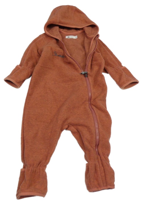 Skořicová melírovaná fleecová kombinéza s kapucí