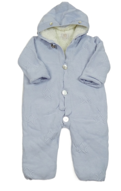 Světlemodrá pletená zateplená kombinéza s hvězdami a kapucí Caramelo