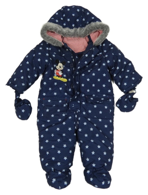 Tmavomodrá šusťáková zimní kombinéza s Mickey a kapucí s kožešinou + rukavice Bhs