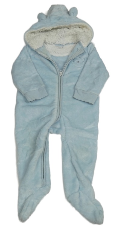 Světlemodrá plyšová kombinéza s medvědem a kapucí