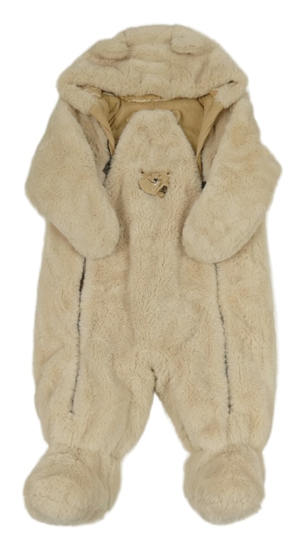 Béžová kožešinová zateplená kombinéza s bobrem a kapucí