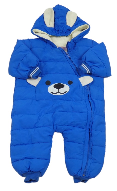Safírová šusťáková prošívaná zimní kombinéza s medvídkem a kapucí
