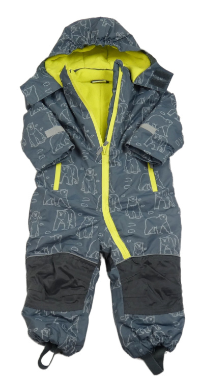 Šedá šusťáková zimní kombinéza s medvídky a kapucí Inoc