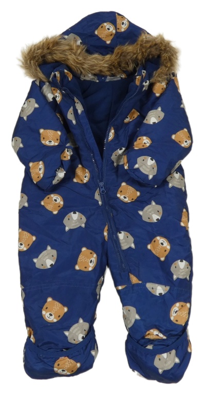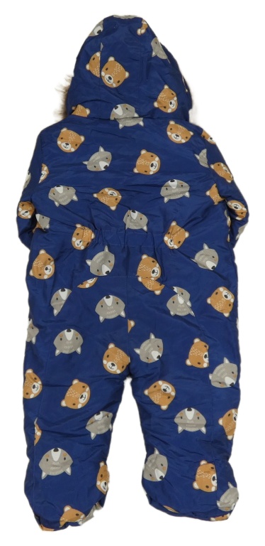 Tmavomodrá šusťáková zimní kombinéza s medvídky a kapucí Ergee