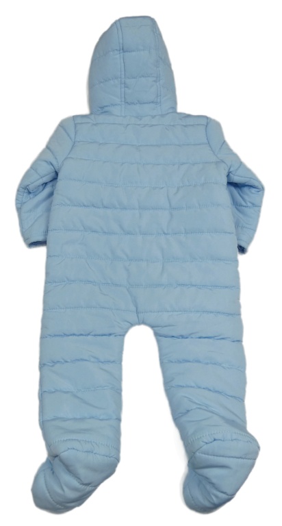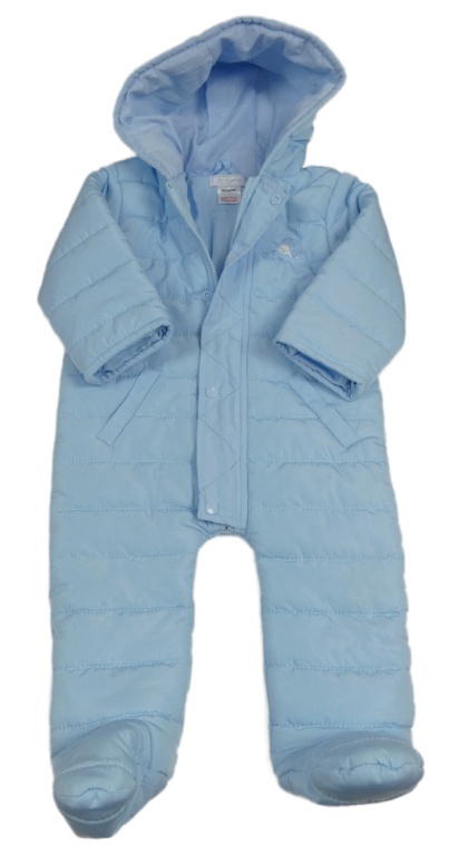 Světlemodrá šusťáková prošívaná lehká zateplená kombinéza s kapucí