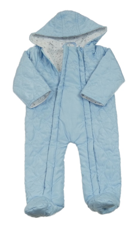 Světlemodrá šusťáková lehká zateplená kombinéza s hvězdami a kapucí