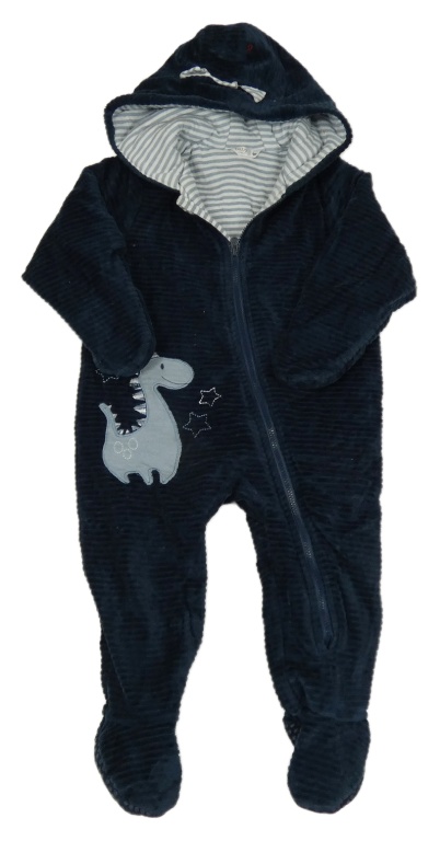 Petrolejová žebrovaná sametová zateplená kombinéza s dinosaurem a kapucí M&Co