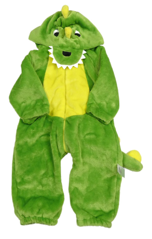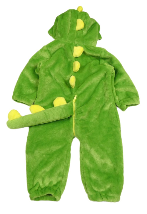 Zeleno-žlutá chlupatá kombinéza s kapucí - dinosaurus