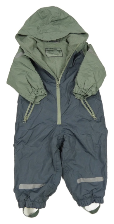 Šedo-zelená šusťáková zimní kombinéza s kapucí Impidimpi