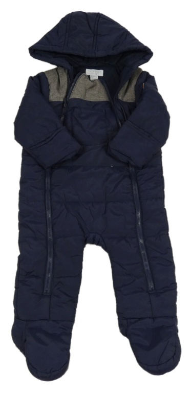 Tmavomodrá prošívaná šusťáková zimní kombinéza s kapsou a nášivkou a kapucí PRIMARK