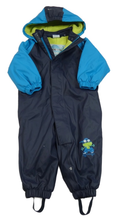 Tmavomodro-modrá nepromokavá jarní kombinéza se žabičkou a odepínací kapucí Papagino