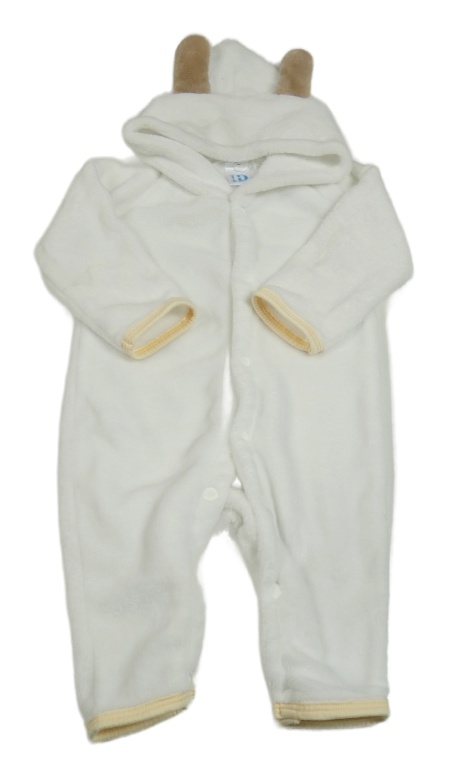 Bílo-béžová chlupatá kombinéza s kapucí s oušky