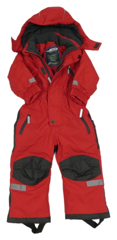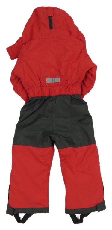 Červeno-tmavošedá šusťáková zimní funkční kombinéza s kapucí
