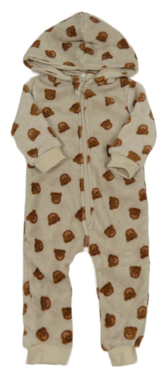 Béžová chlupatá kombinéza s medvědy a kapucí Zeeman