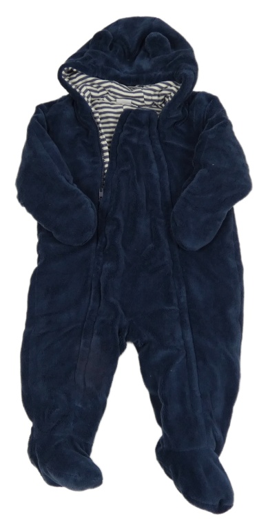 Tmavomodrá chlupatá zateplená kombinéza s kapucí