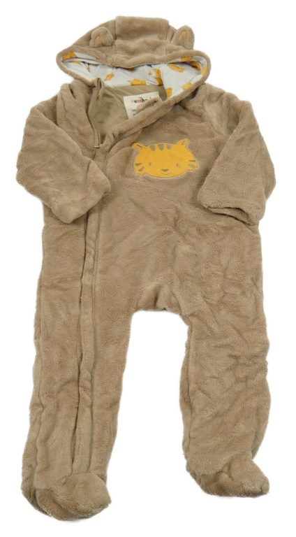 Hnědá plyšová podšitá kombinéza s tygrem a kapucí Kuniboo