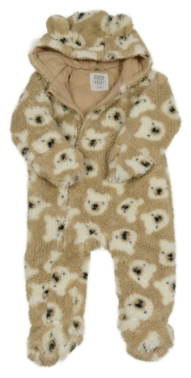 Béžová huňatá podšitá kombinéza s medvědy a kapucí F&F