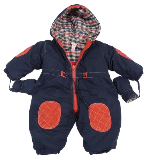 Tmavomodrá šusťáková zateplená kombinéza s kapucí + rukavice