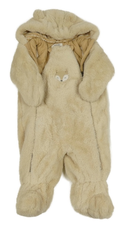 Béžová kožešinová zateplené kombinéza s liškou a kapucí