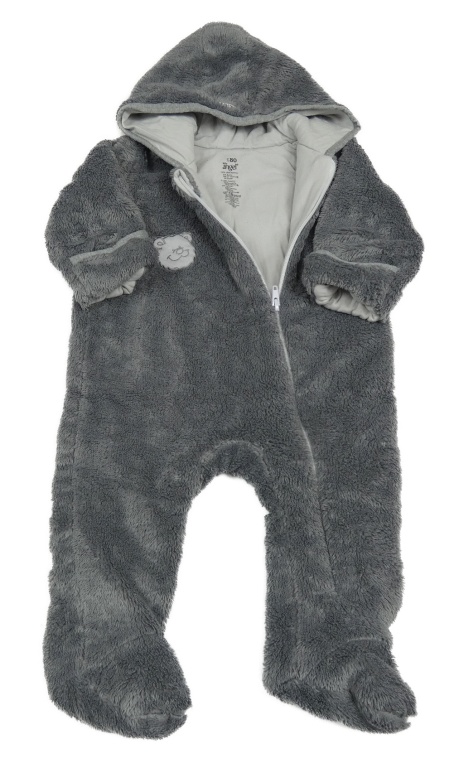 Šedá chlupatá zateplená kombinéza s kapucí