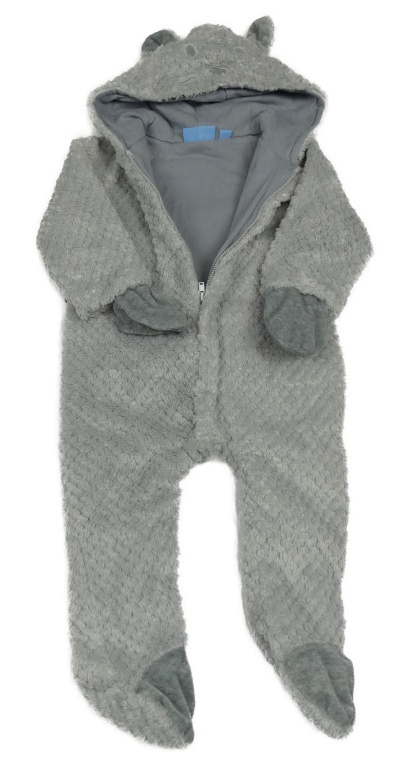 Šedá vzorovaná chlupatá podšitá kombinéza s kapucí