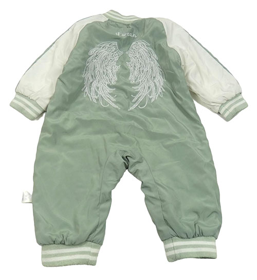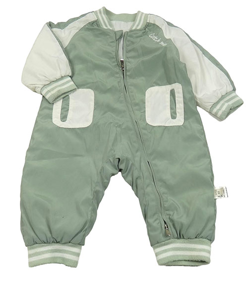 Zelenošedo-bílá šusťáková zateplená kombinéza s nápisem