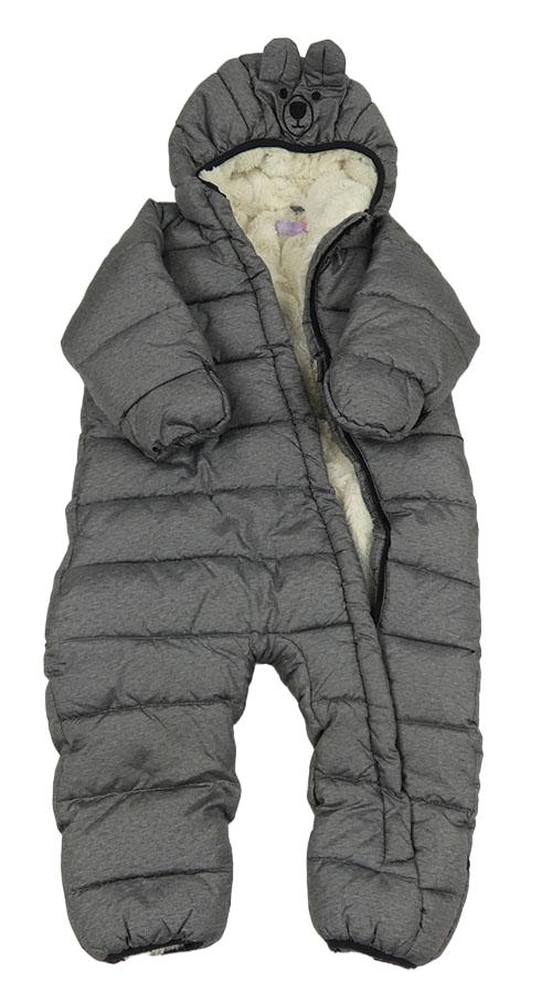 Tmavošedá melírovaná šusťáková zimní kombinéza s kapucí - medvěd Lily & Dan