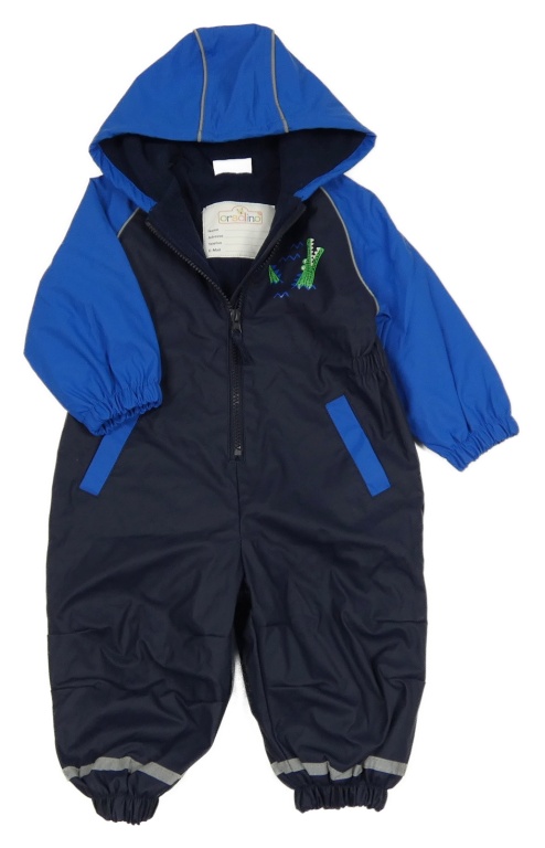 Tmavomodro-cobaltově modrá nepromokavá jarní kombinéza s krokodýlkem a kapucí orsolino