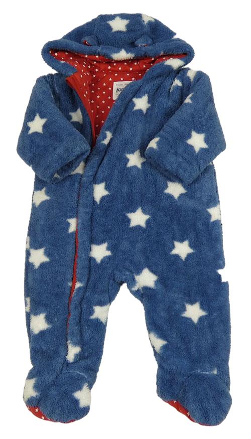 Tmavomodrá chlupatá zateplená kombinéza s hvězdami a kapucí Kite