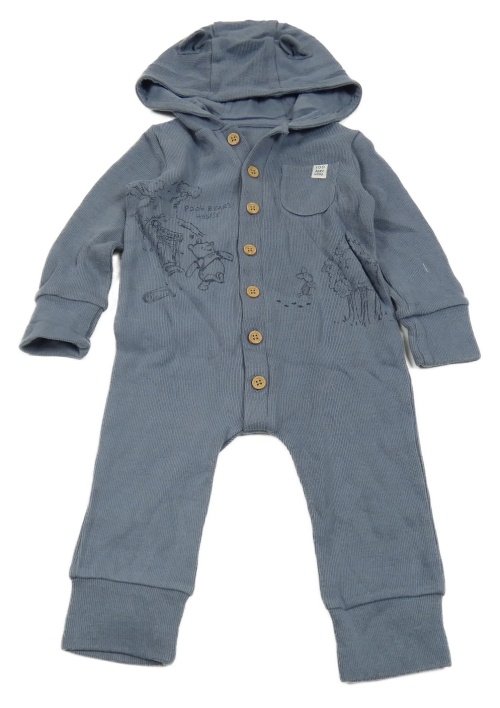 Tmavomodrošedá žebrovaná tepláková kombinéza s Pú a kapucí s oušky George
