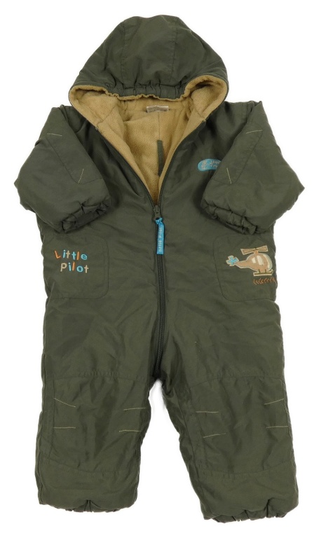 Khaki šusťáková zimní kombinéza s vrtulníkem a kapucí Impidimpi