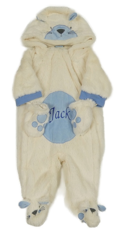 Smetanovo-modrá kožešinová zateplená kombinéza s kapucí - medvídek
