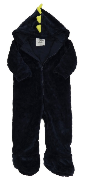 Tmavomodrá plyšová podšitá kombinéza s kapucí a ostny F&F