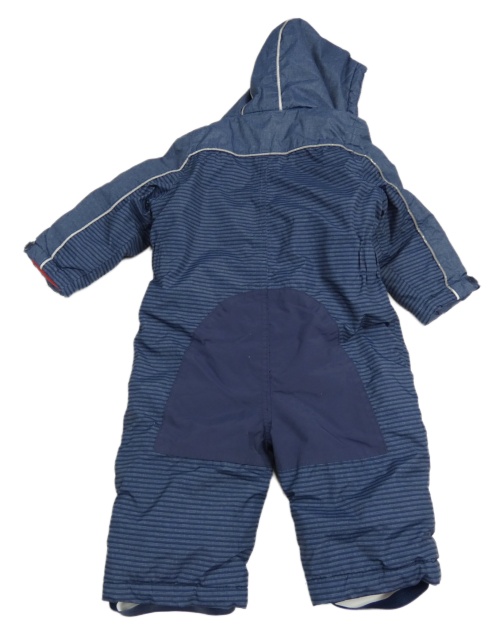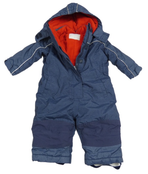 Tmavomodrá pruhovaná šusťáková zimní kombinéza s kapucí