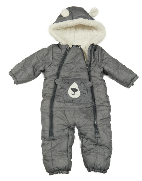 Šedá šusťáková zimní kombinéza s čumákem a kapucí