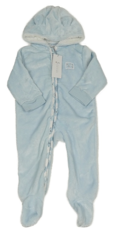 Nové - Světlemodrá chlupatá kombinéza s nášivkou a kapucí