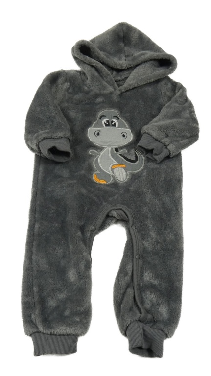 Tmavošedá plyšová kombinéza s dinem a kapucí