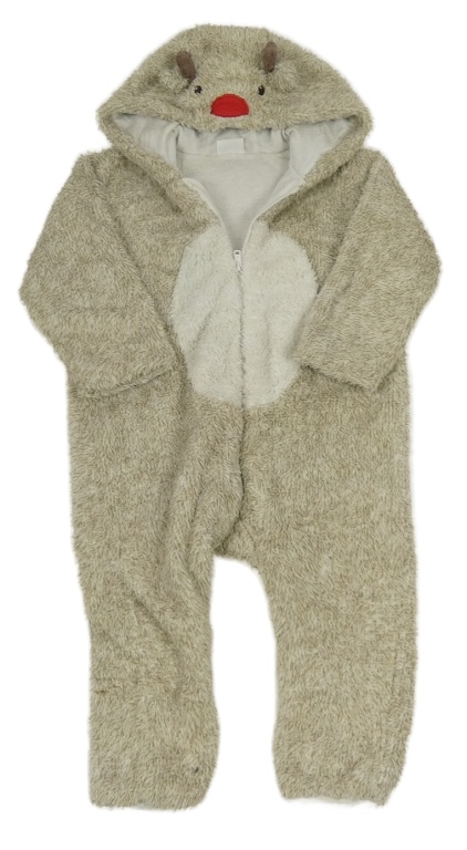 Béžová melírovaná chlupatá kombinéza s kapucí - sob F&F