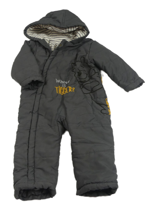 Tmavošedá šusťáková zimní kombinéza s Púem a kapucí Disney