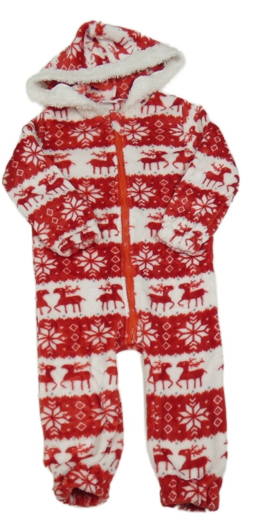 Černo-bílá vzorovaná chlupatá kombinéza s kapucí