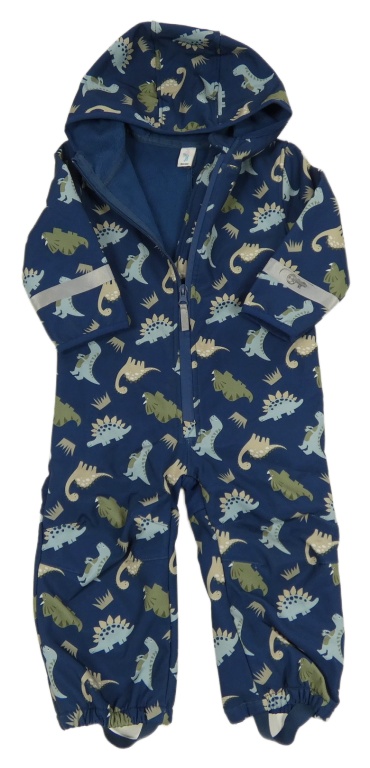 Tmavomodrá softshellová kombinéza s dinosaury a kapucí Topomini