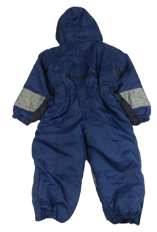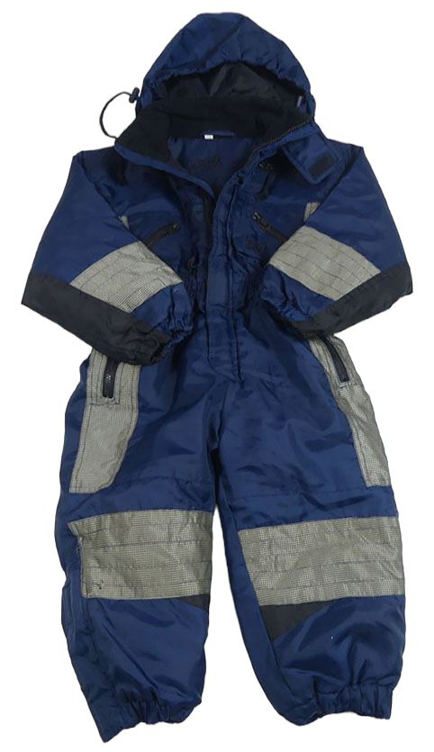 Tmavomodro-šedá šusťáková zimní kombinéza s kapucí