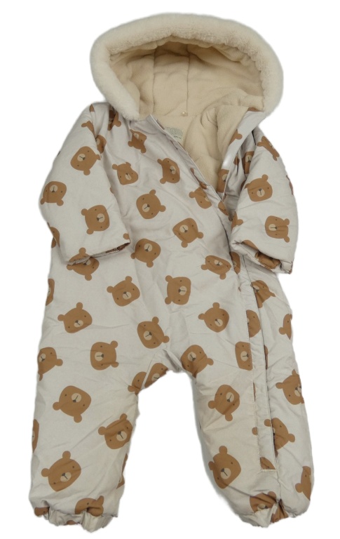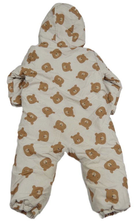 Béžová šusťáková zimní kombinéza s medvědy a kapucí Tu