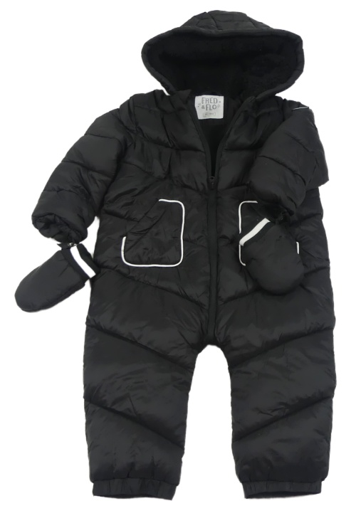 • Nové - černá prošívaná šusťáková zimní kombinéza s nášivkou a kapucí + rukavice F&F