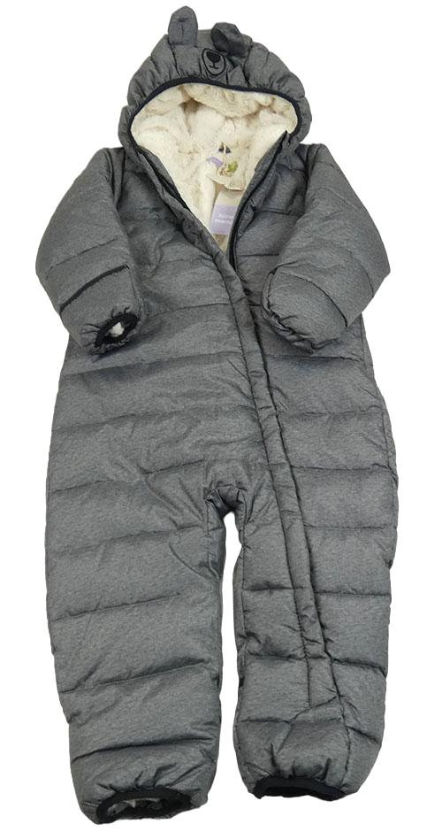 Nové - Tmavošedá melírovaná šusťáková zimní kombinéza s kapucí s medvědem Lily & Dan