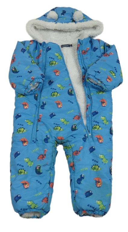 Modrá šusťáková zimní kombinéza s dinosaury a kapucí Inextenso