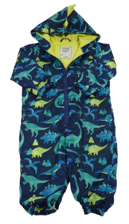 Tmavomodrá šusťáková podšitá kombinéza s dinosaury a kapucí Matalan